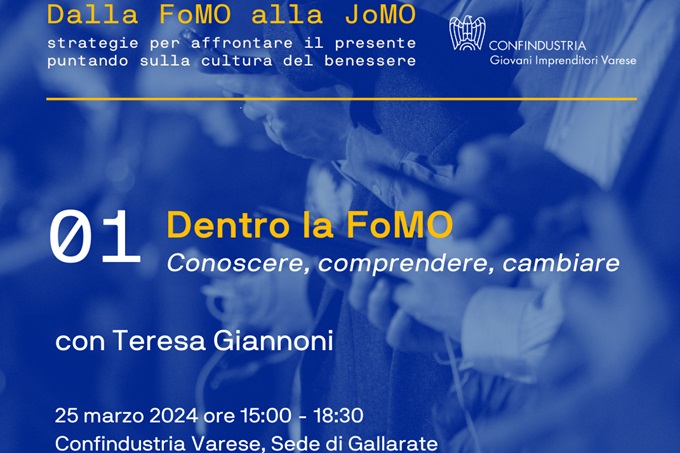 Nel primo appuntamento del percorso formativo "Dalla FoMO alla JoMO, strategie per affrontare il presente puntando sulla cultura del benessere” dal titolo “Dentro la FoMO: Conoscere, Comprendere, Cambiare” verranno esplorate le radici della FoMO, come riconoscerla nei suoi molteplici aspetti e comprenderne i meccanismi psicologici sottostanti.