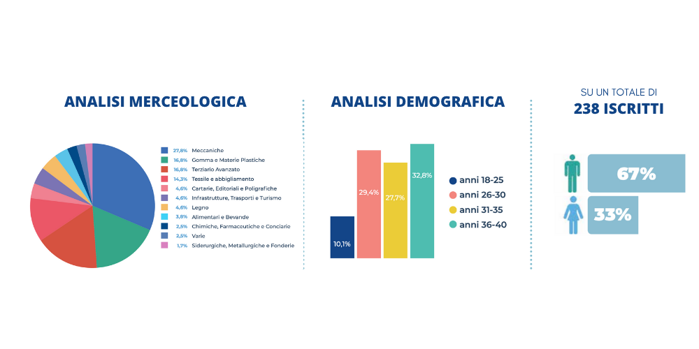 Alla data dell'ultima Assemblea Annuale del 29 ottobre 2025 siamo in 238 iscritti in rappresentanza di 165 imprese: un gruppo multiforme per genere, età ed appartenenza dell’impresa al gruppo merceologico. Diversità che ci arricchiscono e dal cui confronto emerge un Movimento dinamico ed attivo.